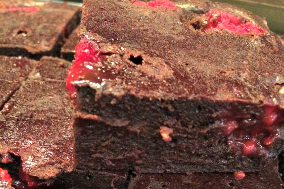 - Pour half the mixture into the prepared slice tray and sprinkle the raspberries evenly in the middle, then pour remaining mixture over the top