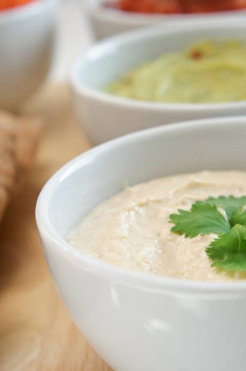• Creamy, full fat dips are often the star of the trestle table at Chrissie gatherings. All that cream and flavouring however means lots of calories and sugar. Stick with dips like homemade hummus. To make hummus, simply blend canned chickpeas with yoghurt, garlic and lemon juice in a food processor. Serve with toasted pita bread chips. Chunky guacamole or yoghurt based dips, like tzaziki, are also great options.