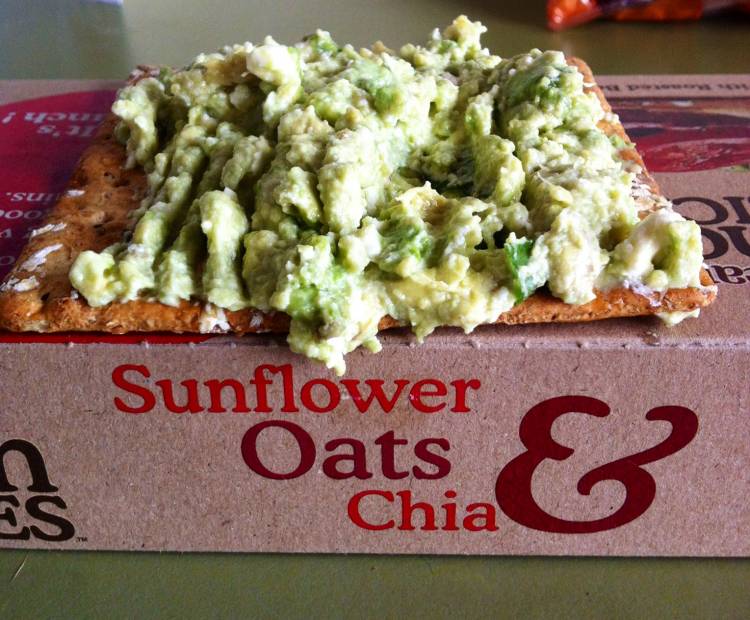 Slice avocado in half and scoop out the flesh, place in a small bowl and mash well with a fork.