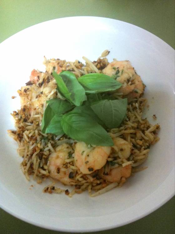 - Add prawns, peanut mix and sauce to rice. Scatter with bean sprouts, torn basil leaves and a squirt of lemon or lime juice.