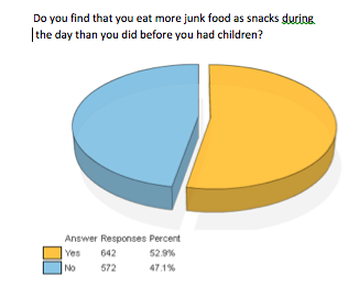 - 1 in 2 find that they eat more junk food as snacks during the day than they did before they had children.